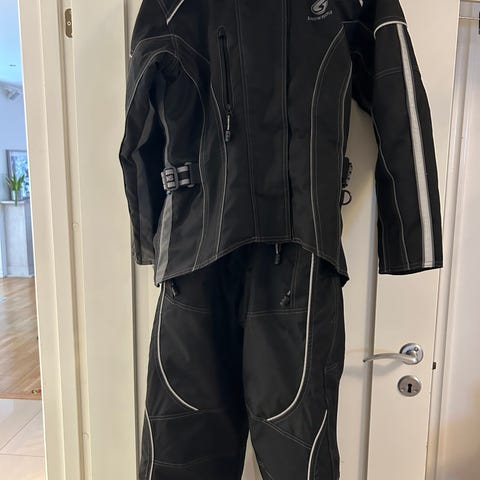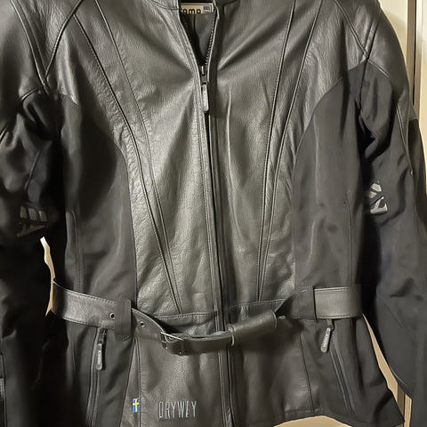 Dainese D-air motorcykelställ i svart läder. Tvådelad dräkt med jacka och byxa som kan kopplas ihop med dragkedja. Utrustad med D-air-teknik och skyddszoner vid axlar, armbågar, knän och ryggparti. Perforerat innerfoder för ventilation. Passar för sport- och landsvägskörning på motorcykel.