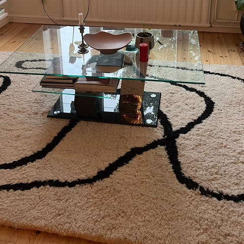 Otroligt fin ryamatta från Marie Olsson Nylanders samarbete med Ellos. Har aldrig blivit använd utan enbart legat undanstuvad i källaren. Nypris 9900 kr. Mått 200x300 cm.