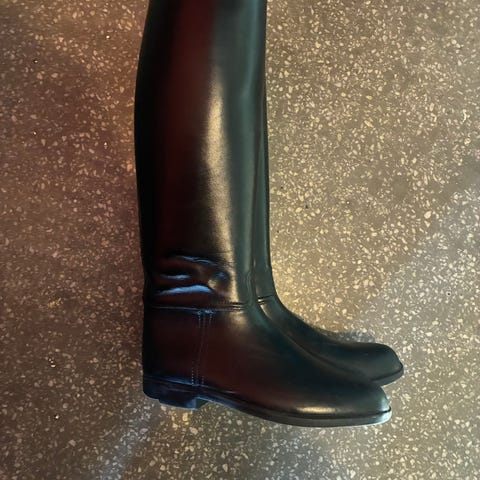 HKM ridstövlar i svart läder för dam i storlek 38. Stövelhöjd är 44 cm och vadvidd 37 cm enligt etikett.
