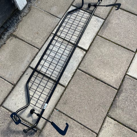 Jeppe hundgaller för bil i svart metall. Gallerkonstruktion av stål med flera sektioner och fästen för montering i bilens bagageutrymme. Avsett för att avgränsa lastutrymmet och ge en säker plats för hund i bilen. Passar kombi eller liknande biltyp beroende på mått och infästning. Märkt med Jeppe – för hund i bil.