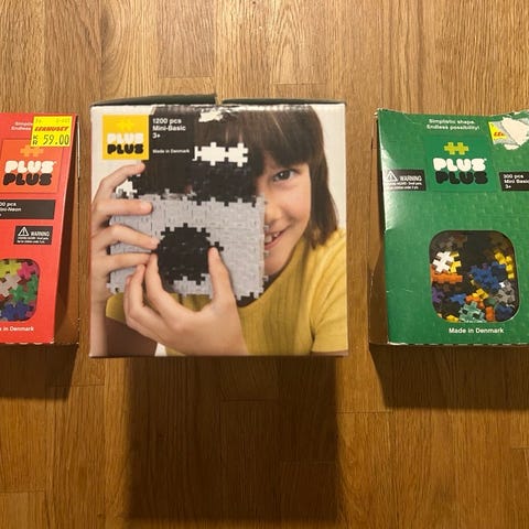 Plus Plus byggbitar i blandade färger för barn. Byggbitarna kan användas för att skapa olika figurer och modeller enligt medföljande inspirationsblad eller egen fantasi. Lämpliga som konstruktionsleksak och pysselmaterial för barn i olika åldrar. Har ej räknat men minst 300 bitar, ny pris över 1000kr
