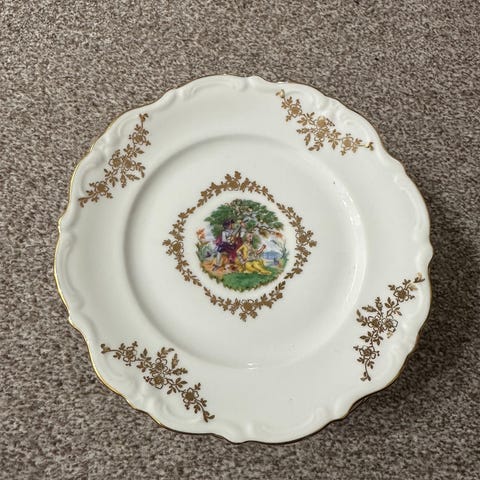 Djupa vintage tallrikar med blommönster porslin vit/rosa