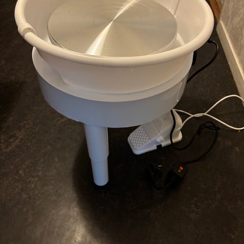 Begagnad sparkdrejskiva säljes. Drejskivans diameter är 28 cm och fotsnurrans diameter är 74 cm.