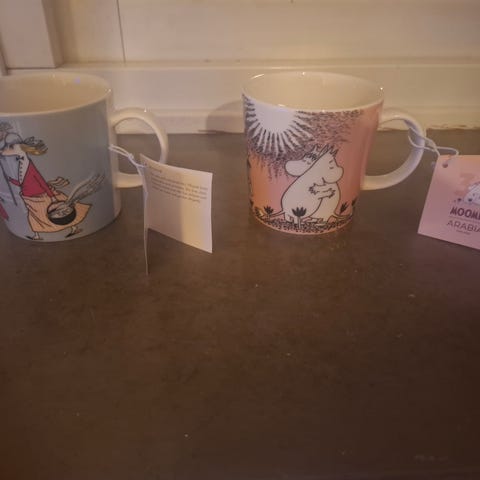 Säljer 7 stycken Muminmuggar från Arabia i mycket fint bruksskick.