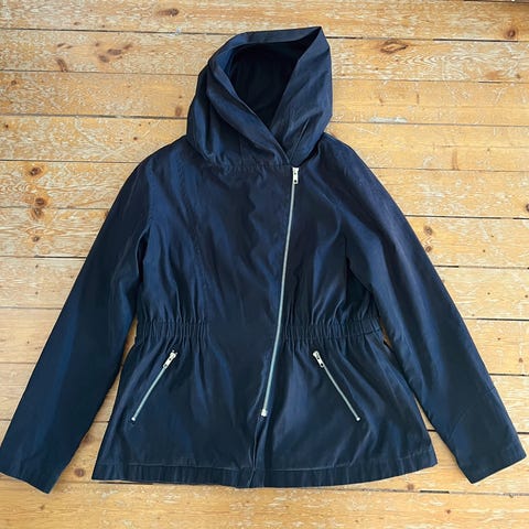 Elvine vinterjacka för dam i storlek XL. Modellen har huva och dragkedja framtill, kompletterad med knappslå. Invändigt finns quiltat foder. Passar som varm ytterjacka under kallare årstider.