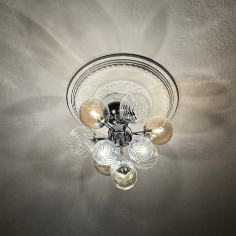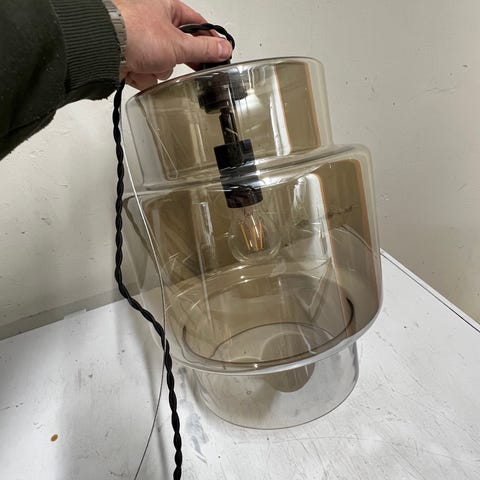 Större taklampa i grönt glas, perfekt ovanför matbordet!