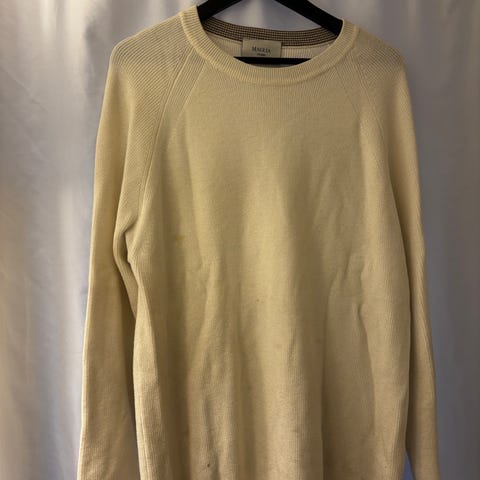 Oscar Jacobson tröja för herr i storlek XL. Rundhalsad modell i beige färg, tillverkad i bomull. Passar som vardagströja eller som ett extra lager över skjorta eller t-shirt.