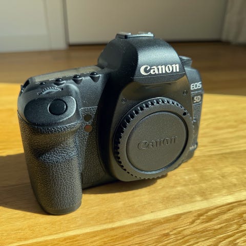 Canon EOS 5D Mark II systemkamera i svart utförande. Kamerahus för fullformatsobjektiv med Canon EF-fattning. Utrustad med optisk sökare, stor LCD-skärm på baksidan samt övre informationsdisplay. Kameran har inbyggd blixtsko för extern blixt och standardstativfäste på undersidan. Passar för foto inom till exempel porträtt, landskap, reportage och studio beroende på val av objektiv och tillbehör.