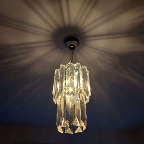Större taklampa i transparent glas, deco stil. Perfekt ovanför köksbordet.