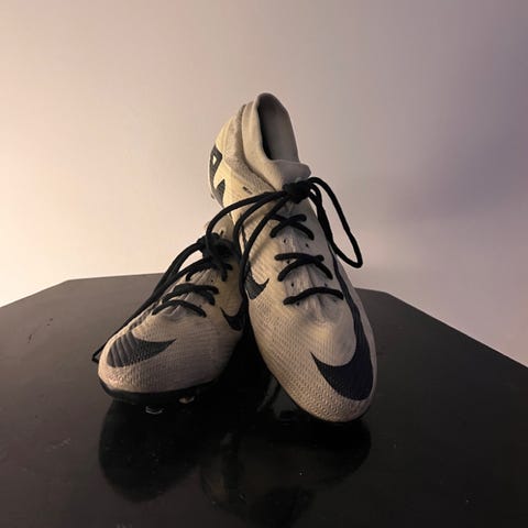 Adidas fotbollsskor med dobbar. Skorna är blå med vita detaljer och svart häl- och snörningsparti. Storlek EU 42 (UK 8). Ovandel i syntetmaterial och yttersula med fasta dobbar anpassade för spel på natur- eller konstgräs. Passar för fotbollsträning och matchspel. Skickar med ett par nya skosnören.