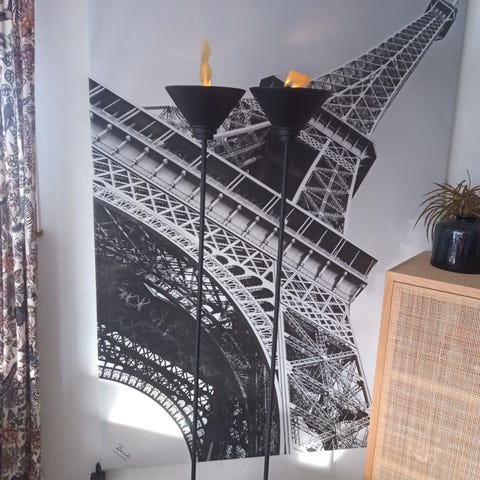 Två stycken coola industrilampor ca 90 cm höga, metall och trä.