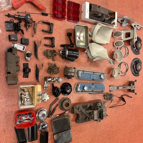 Volvo blandade bildelar. Det mesta är till amazon och motordelar B18. Partiet innehåller olika komponenter och reservdelar nytt och begagnat . Navkapslar packningssatser , fläktremmar innerhandtag fönstervevar . Nytt knutkors , uttrampningslager . Stötfångarhorn och vindrutetorkare till Amazon . Olika spjällaxlar till förgasare. Skruvar och muttrar mm Tre fulla kartonger . Allt eller inget . Skickas ej endast avhämtning