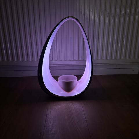 Säljer en unik och dekorativ bordslampa från Globen Lighting. Lampan har en skulptural spiralform i krom/metall.