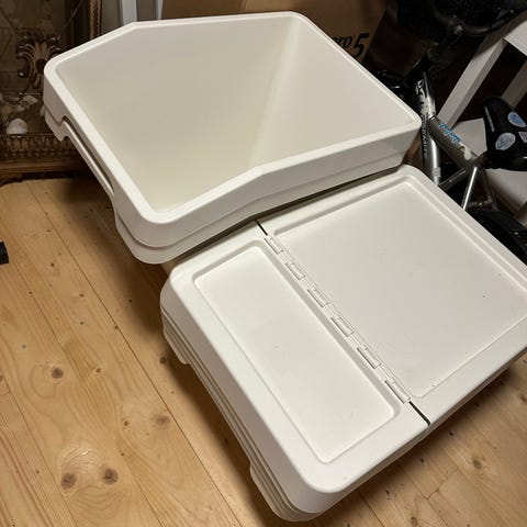 Ica. SmartStore Classic förvaringslådor i olika storlekar. 3 lådor är 1,5 liter (20x15x11 cm) och tre lådor är 5 liter (30x19x11 cm). Praktiska för att organisera och förvara diverse saker.