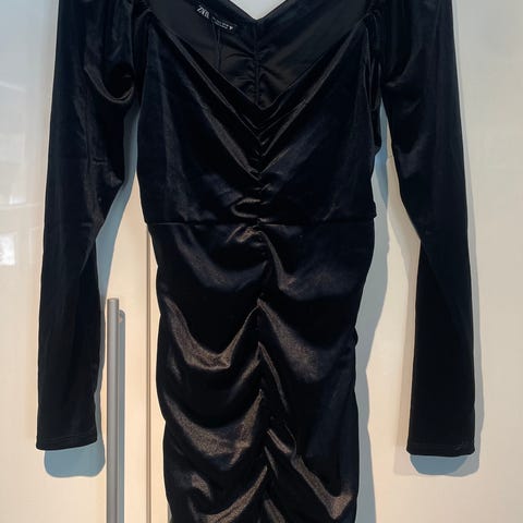 Ny Zara brun paljettklänning, midilängd, halterneck, storlek M