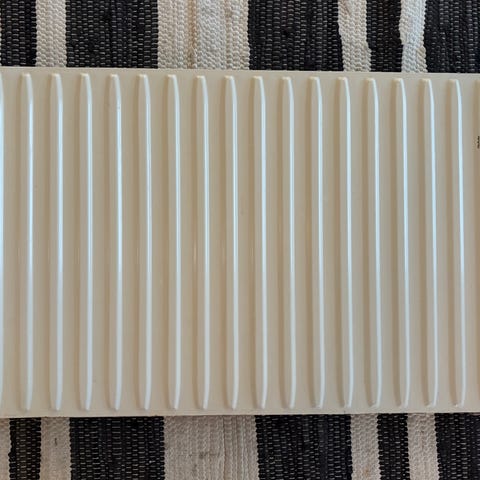 Väggmonterat vätskefylld el-element i vit färg med anslutningskabel och stickkontakt. Levereras med väggfästen enligt bilden.