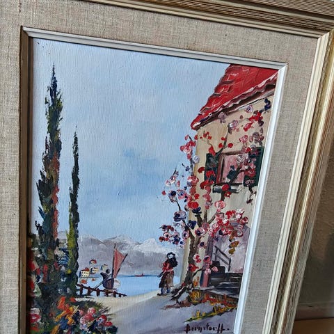 I am not sure who painted it, but it does have a signature on the lower corner. It is old and appears to have been made in either the 1970s or 1980s. This would make a nice addition to any home, as it tells a story.
