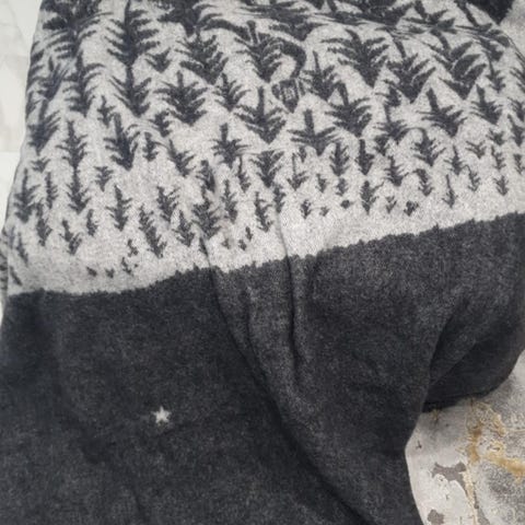 Vändbar ullpläd från IKEA:s tillfälliga kollektion Svärtan