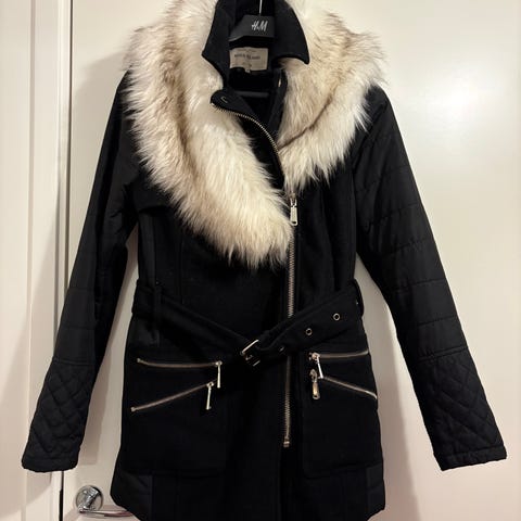 Dunkappa i svart färg, storlek S, avtagbar fuskpläs krage, längd till låren,från mango.