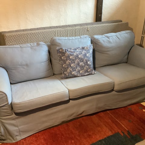 IKEA Landskrona med schäslong, klädsel Gunnared mörkgrå, ben i metall. 3 år gammal, hel och ren. 5 500 kr