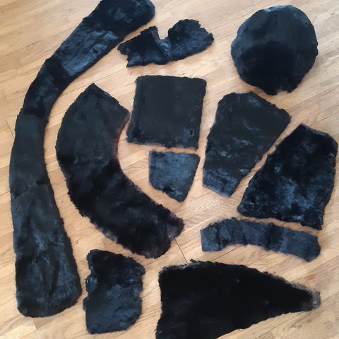 Läderhudar i två färger, en grön och tre blå. Hudarna är hela och utskurna i oregelbundna former, lämpliga för exempelvis sömnad, hantverk, möbelklädsel eller andra läderprojekt. Ytan är slät med naturliga veck och kanter. Storlek på hudarna framgår av bilderna. Kan säljas separat , 500kr styck.