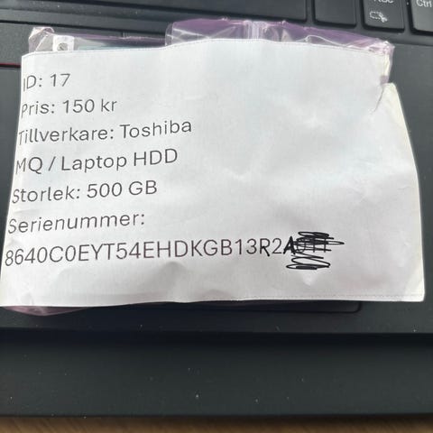 HGST Hitachi Travelstar hårddisk med lagringskapacitet på 500 GB.