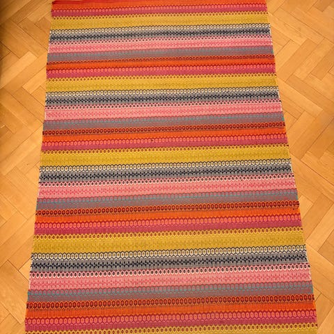 Rutiga färgspektrat orange, gul, cerise, röd och gröna streck.