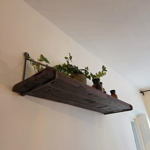 Cool gammal hylla av sliper med bulltar och äldre spikar mm.