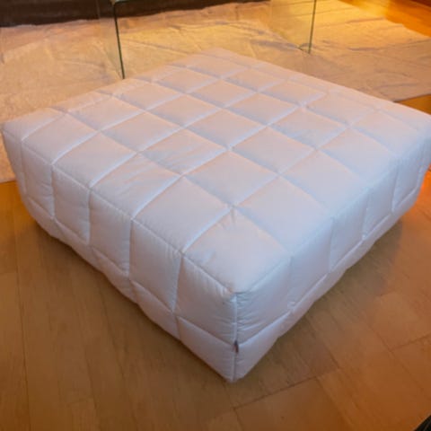 2 st fina o praktiska puffar i creme/beige sammet. Dem är lätta att bära men stabila att sitta på.