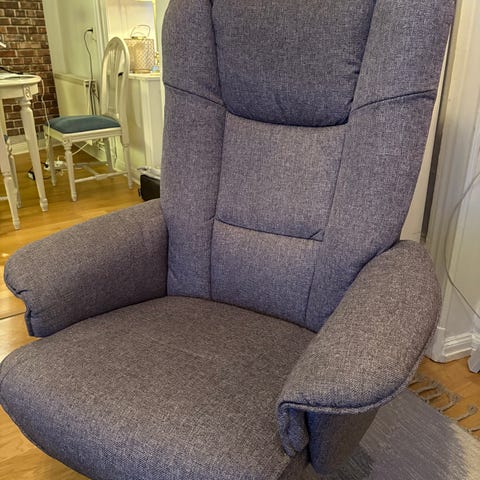 Fåtölj med elektriska funktioner för lyft och separat inställning av ryggstöd och fotstöd. Sittdjup 50 cm.