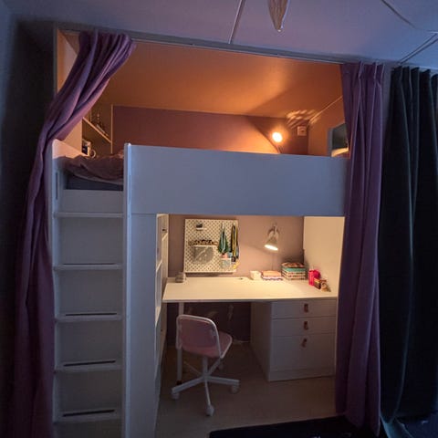 IKEA loftsäng med skrivbord och förvaring vit