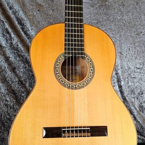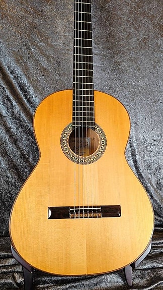 Gitarren är märkt Calle de la Paz 8, Madrid och daterad 1998, vilket placerar den i Ramírez klassiska Madridskola – känd för stabil byggkvalitet, projektion och ett tydligt, bärande sound.