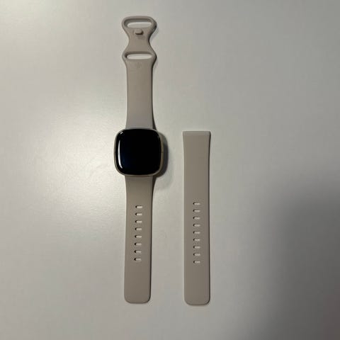 Fitbit Sense 2 från 2025 - kvitto finns. Klockan fungerar perfekt och har inga repor eller funktionella fel, men det visst är kosmetiskt slitage längs kanten (den har en ljus kant runt skärmen som nötts lite på vissa ställen). Den är i färg silver (White/Platina) med 4 tillhörande armband i svart, grått, vitt och metall. Laddare kommer med och fungerar perfekt.