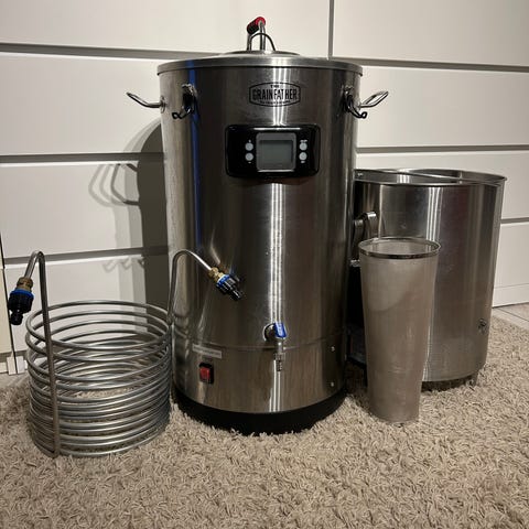 Kastrull 15 L för lakvattenvärmning eller för att brygga 10 L batcher. Brew in Bag-påse och mäskgaller medföljer.