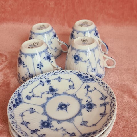 Royal Copenhagen porslin kaffekoppar med fat vit blå