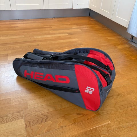 Fin tennisväska. Dubbla innerfack samt två mindre fack på sidan. Alla dragkedjor etc fungerar felfritt. Smidiga alternativ för att bära i hand eller på rygg.