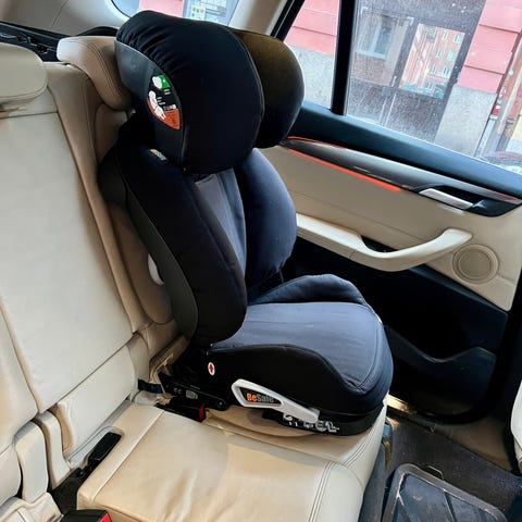 Axkid bilbarnstol för barn upp till 25 kg. Bakåtvänd modell med fempunktssele och justerbart huvudstöd. Stolen monteras med bilens bälte och stödben samt förankringsband. Klädsel i svart textil med vadderade axelremmar och sidokrockskydd.