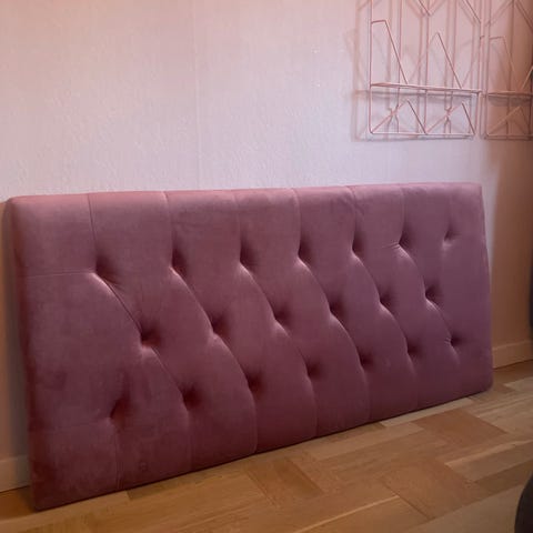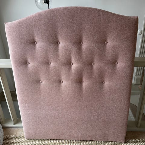 Säng med sänggavel och överkast rosa