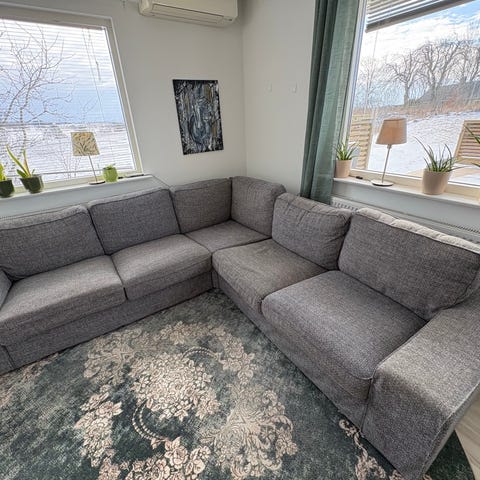 Soffan står en och halv våning upp i ett hus utan hiss, så ta med bärhjälp.