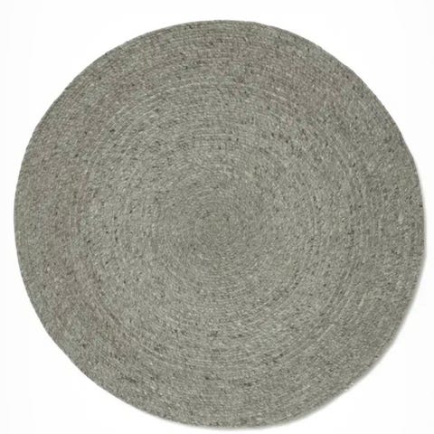 Superfin, ny rund matta i ull, gråmelerad färg. Finns i ett mycket pedantiskt hem. 240 cm i diameter. Mattan har vävd struktur med blandning av mörka och ljusa toner. Passar exempelvis under matbord eller i vardagsrum. Mattan är vävd i tät kvalitativ ull och har en jämn yta.