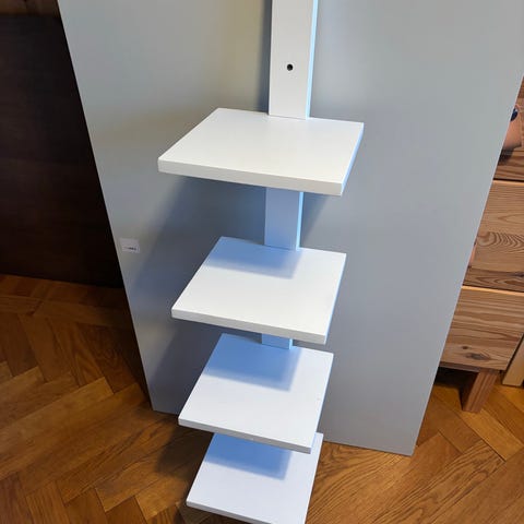 Säljer en praktisk och stilren vit hylla med flera fack. Perfekt som extra förvaring i hall, badrum, kök eller barnrum. Tar lite plats men rymmer mycket.