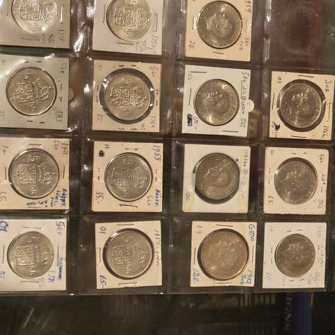 Historiska mynt och guld. Säljer 18 st 1 kronor från 1949. Innehåller 40% silver. Enligt myntkollen idag är de värda 62.50 kr styck. Jag tar 1.000 kr för alla. (Har 100 till.) Dessutom ett guldmynt om 24 karat för 400 kr samt ett 370 år gammalt mynt i silver 1/48 daler 1654-1660. Från kung Karl X Gustavs tid. Det var ju ett tag sen. Kr 300. (Har 12 st)
