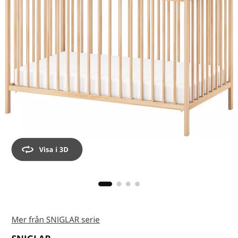 IKEA Sniglar spjälsäng i naturfärgat trä. Klassisk spjälsäng med ribbor runt om och enkel, rak design. Lämplig för små barn och spädbarn. Sängen är avsedd för inomhusbruk i barnrum och kan användas tillsammans med standardmadrass i passande storlek för modellen Sniglar.