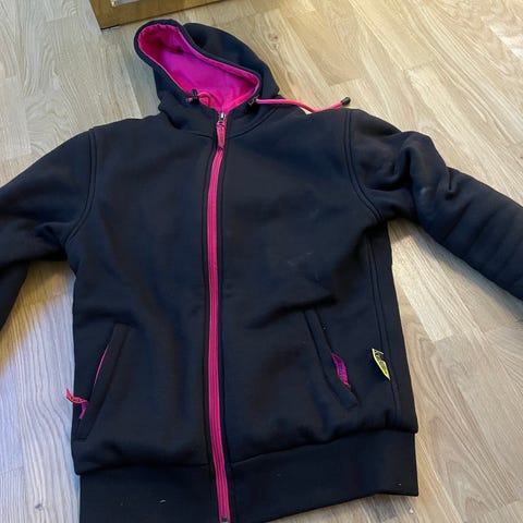 Twice hoodie jacka i storlek S. Jackan har lätt ryggskydd, axel skydd och armbågs skydd.