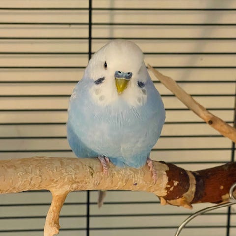 En 2,5 månaders ung hane utav rasen engelsk undulat säljes.