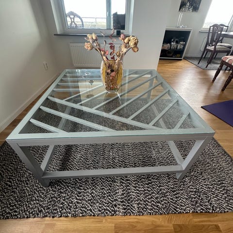 Jättefin soffbord svart med frostad glas