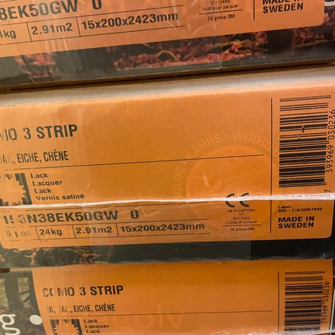Abetone 3 Strip parkettgolv ek matt vitlack 16 m2
