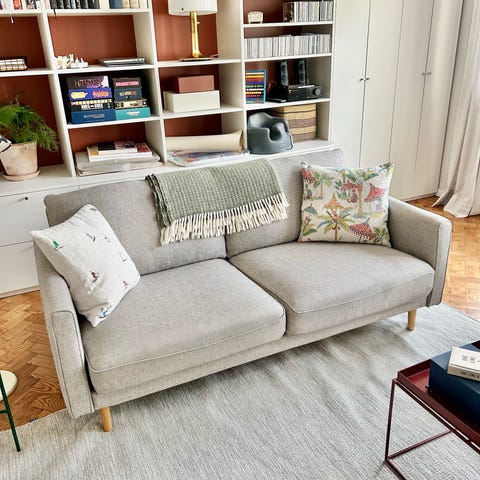 Soffan har en skön ergonomisk sitthöjd men funkar likväl att halvligga och även sova gott i.