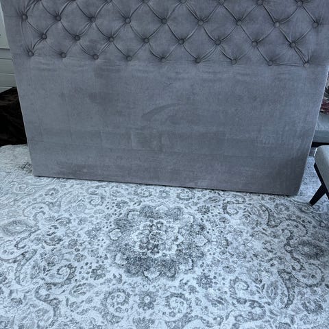 Mio sänggavel i grå textilklädsel. Gaveln har knapptuftad, vadderad front med djuphäftad design. Passar som huvudgavel till säng och placeras mot vägg bakom madrass och sängram. Färg och utförande gör den lämplig att kombinera med olika typer av sängar och sovrumsinredningar.