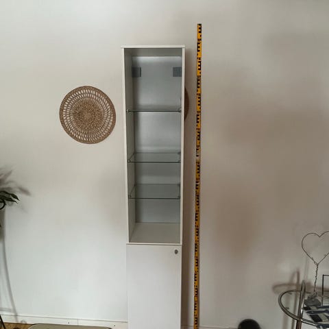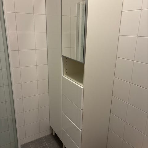Badrumsskåp högskåp i trä från IKEA i mycket bra skick. Insidan har flera hyllplan som ger god förvaring för handdukar, hygienartiklar och andra badrumsprodukter. Skåpet är fristående och anpassat för placering i badrum eller tvättutrymm ock kan monteras på vägg.